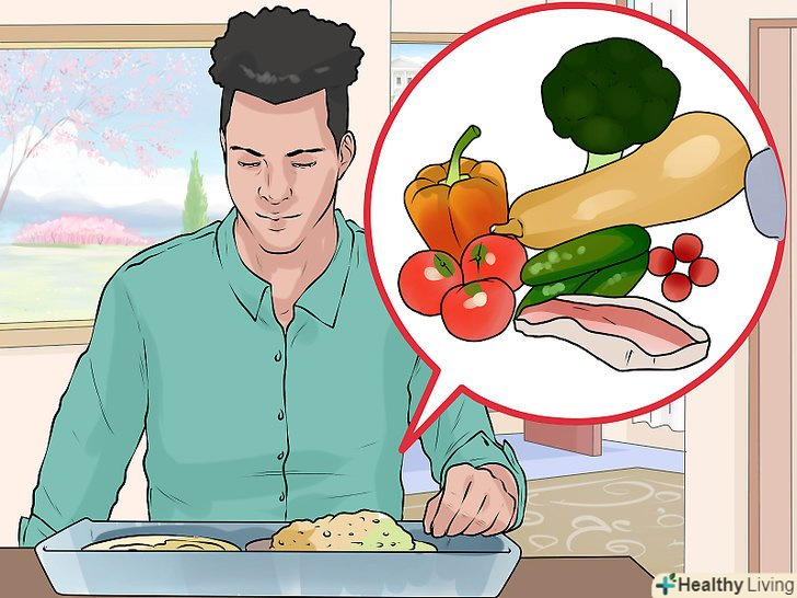 - Їжте продукти, в яких багато вітамінів і поживних речовин: цільнозернові злаки, фрукти, овочі, молочні продукти, нежирний білок.[37]