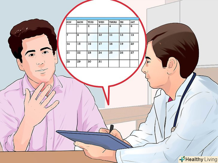 Запишіться на прийом до лікаря.якщо помітите у себе симптоми отруєння свинцем або будете підозрювати це отруєння, як можна швидше покажіться лікаря. Відсутність лікування може негативно вплинути на розвиток головного мозку у дітей, а також викликати проблеми з нирками і нервовою системою як у дітей, так і у дорослих. Отруєння свинцем може стати причиною смерті.[7]- Лікар призначить вам аналізи (наприклад, крові), які дозволять поставити діагноз. Лікар буде шукати ознаки дефіциту заліза (анемію), яку викликає свинець, а також проведе візуальний огляд. Після цього вам буде призначено лікування.[8]