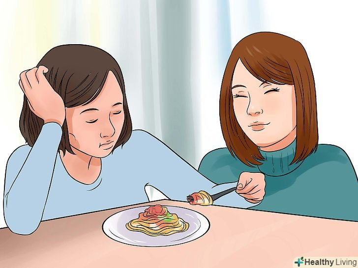 Знайдіть відповідний час, щоб поговорити з людиною наодинці.розлад харчової поведінки-це реакція на більш складні особистісні та соціальні проблеми. Можливо, ви відчуваєте незручність, обговорюючи цю проблему з людиною. Якщо ви вирішили обговорити з людиною його поведінку, обов'язково робіть це наодинці і у відповідний час. [35]- Не обговорюйте з людиною цю тему, якщо ви відчуваєте гнів, втому, стрес або емоційне напруження. Навряд чи в такому стані вам вдасться обговорити цю проблему.[36]