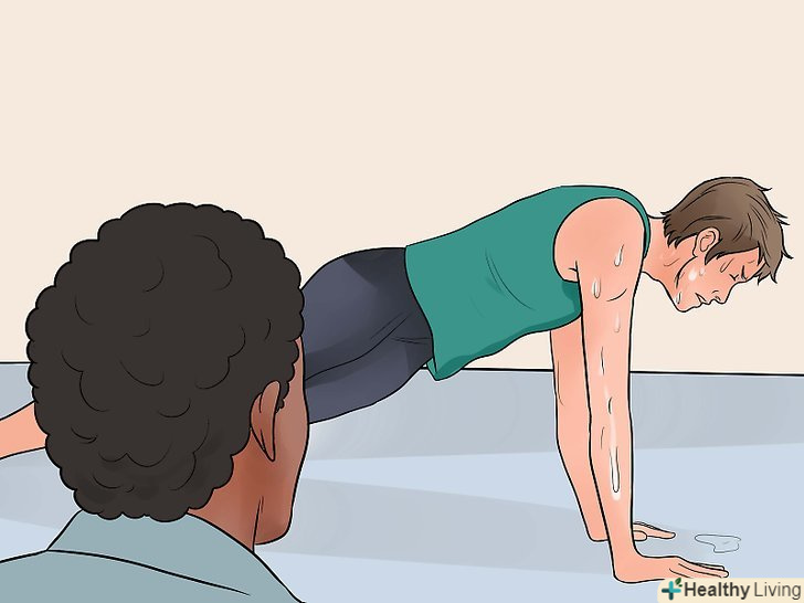 Зверніть увагу на те, як людина займається фізичними вправами.люди, які страждають на анорексію, намагаються компенсувати з'їдене інтенсивними тренуваннями. Як правило, тренування таких людей відрізняються особливою інтенсивністю. [9]- Наприклад, людина може присвячувати тренувань багато годин щотижня, навіть якщо в цьому немає необхідності. Крім того, такі люди продовжують тренуватися навіть тоді, коли вони втомилися, хворі або мають травму. Вони одержимі думкою, що їм потрібно спалити калорії, які вони з'їли.