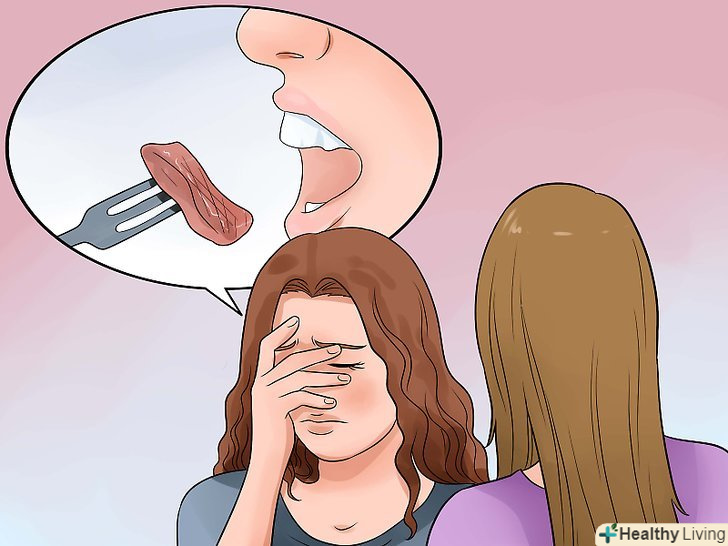 - Люди, які страждають булімією, регулярно переїдають, а потім очищають організм від з'їденого.[25] Люди, які страждають на анорексію, їдять зовсім мало, а потім все одно очищають організм від з'їденого. Вони можуть з'їсти одне печиво або пакет чіпсів і потім очистити організм. [26]