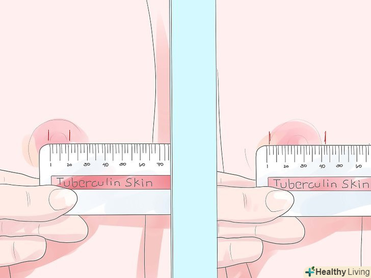 Виміряйте величину ущільнення на місці тесту.(не плутайте набряк і ущільнення. Ущільнення-це тверде, щільне, підноситься освіту з певними межами.) Це ущільнення вимірюють на передпліччі в міліметрах.