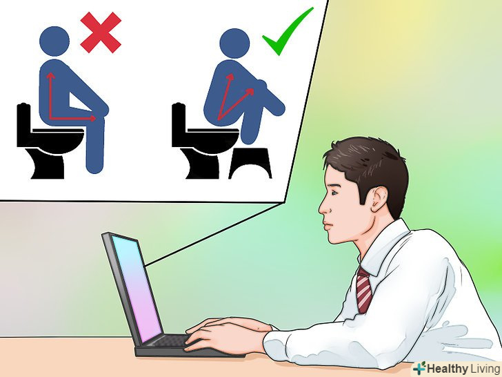 Досліджуйте інформацію про те, як відбувається процес дефекації.під час дефекації задіяна пуборектальная м'яз. Пуборектальная м'яз як петля охоплює пряму кишку ззаду.- Коли ви сідаєте на унітаз, відбувається ослаблення м'язів. Якщо ви присядете навпочіпки, м'язи будуть ослаблені повністю, завдяки чому процес дефекації пройде легше.