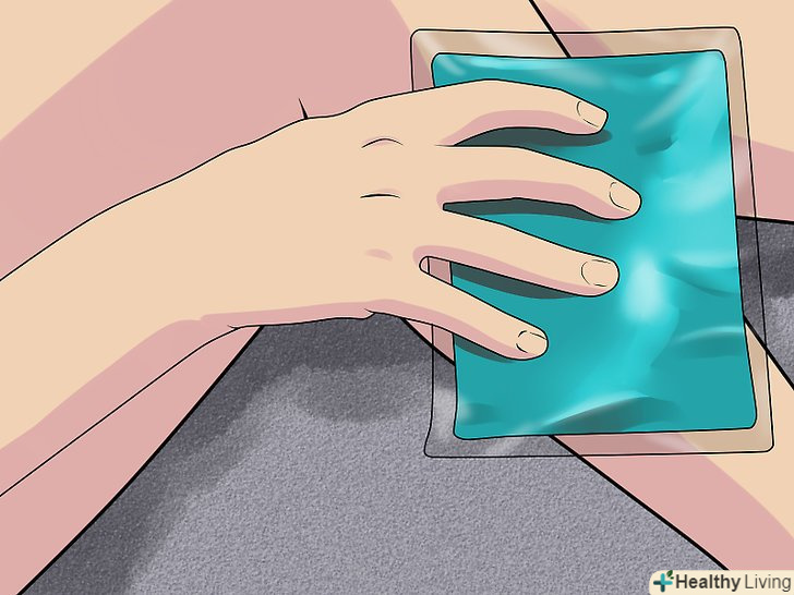 Прикладіть до м'яза лід.це зменшить набряк і знизить больові відчуття. Наповніть великий пакет для зберігання харчових продуктів кубиками льоду. Оберніть його тонким рушником, щоб захистити шкіру від шкідливого прямого впливу льоду. Тримайте компрес на розтягнутому м'язі по 20 хвилин кілька разів на день, поки набряк не спаде.[2]- Пакет замороженого горошку або інших овочів підійде так само прекрасно, як і пакет з льодом.