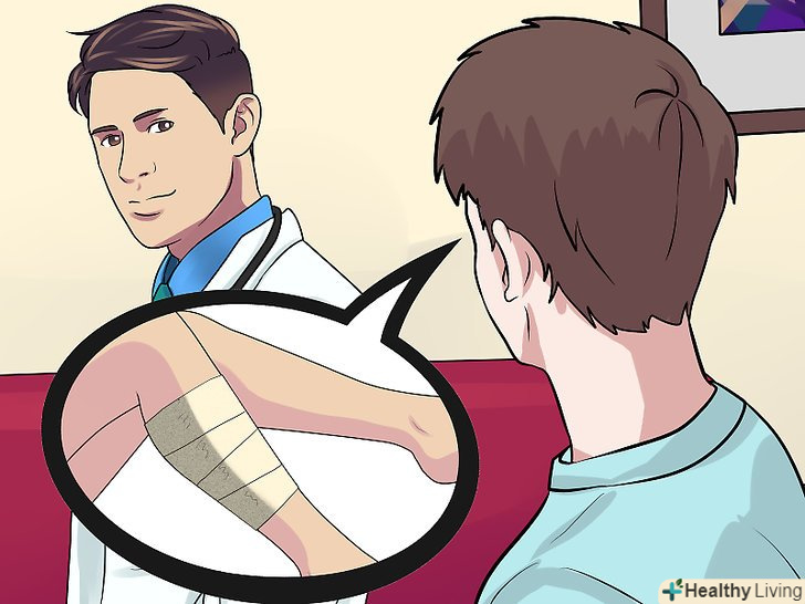 Слідкуйте за болем.відпочинок і лід повинні допомогти розтягнутому м'язі вже через кілька днів. Якщо ви відчуваєте сильний біль, яка не проходить, зверніться до лікаря. У вас може бути важка травма, яка потребує медичної допомоги.- Якщо лікар визначить, що ваша травма потребує додаткової допомоги, вам можуть дати милиці або пов'язку, щоб розтягнута м'яз відпочивала. Лікар також може виписати дуже сильне знеболюючий засіб.