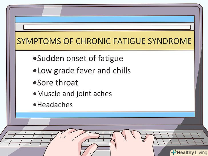 Дізнайтеся про симптоми синдрому хронічної втоми.якщо ви відчуваєте постійну втому, і вам не вдається поліпшити самопочуття, змінивши свій раціон харчування і спосіб життя, можливо, у вас синдром хронічної втоми.- До симптомів синдрому хронічної втоми можна віднести раптово виникла втома, особливо після грипу, субфебрильну температуру і озноб, біль в горлі і збільшення лімфатичних вузлів в області шиї і пахвовій області, біль в м'язах і суглобах, головні болі, проблеми з концентрацією уваги і перепади настрою.[79]