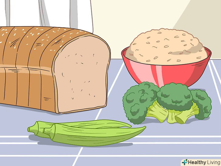 Включайте в свій раціон складні вуглеводи.Вуглеводовмісні продукти є невід'ємною частиною здорового харчування. Вуглеводи забезпечують нас енергією, завдяки якій ми можемо займатися повсякденними справами.[9] але вуглеводи бувають двох видів-хороші і погані. Якщо ви відчуваєте втому, віддавайте перевагу здоровим вуглеводам, які допоможуть вам залишатися активним протягом усього дня. [10]- Включайте в свій раціон від чотирьох до одинадцяти порцій зернових продуктів щодня. Крім того, віддавайте перевагу цільнозерновим продуктам замість обробленого або очищеного зерна.[11]