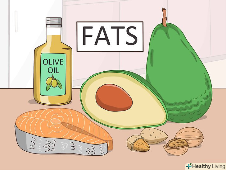 Вибирайте корисні джерела жирів.організм, відчуваючи дефіцит вуглеводів, починає використовувати в якості основного джерела енергії не вуглеводи, а жири. Щоб задовольнити потребу організму, вибирайте правильні джерела жирів.- Всього існує чотири види жирів: мононенасичені жирні кислоти, поліненасичені жирні кислоти, насичені жирні кислоти і транс-жири. Насичені жирні кислоти і транс-жири є поганими варіантами жирів.[15]