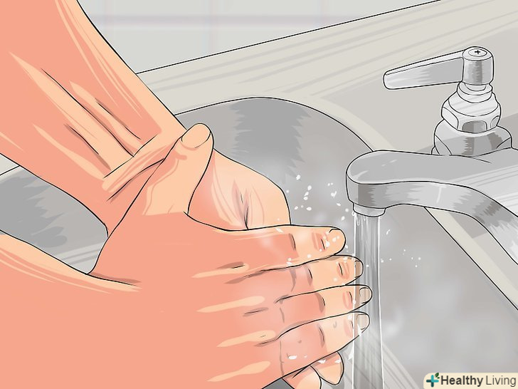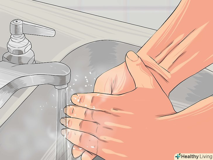Помийте руки.зробіть це обов'язково, якщо рана ще не до кінця затягнулася, так як існує ймовірність занесення інфекції. На брудних руках багато бактерій, які можуть потрапити в рану, коли ви зніміть клей. [7]- Помийте руки теплою водою з милом. Змийте всю бруд з рук і видаліть її під нігтями.