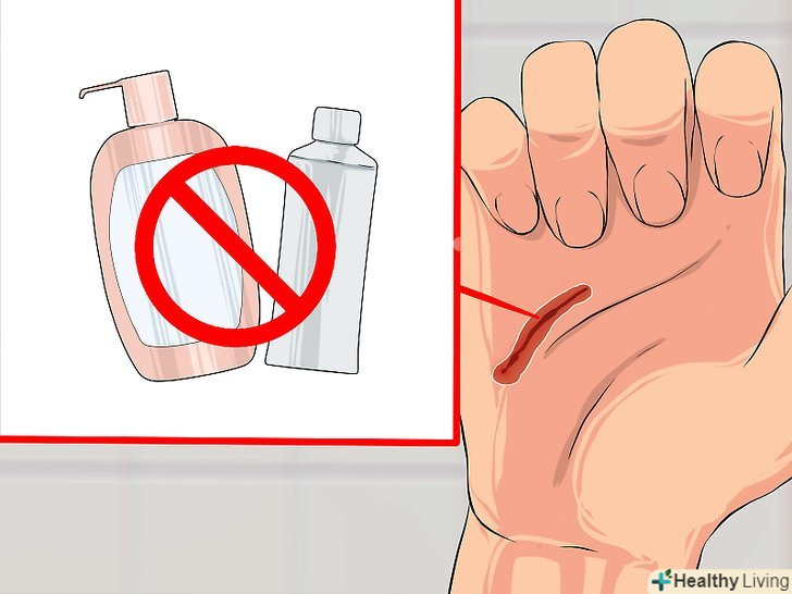 - Не використовуйте спирт, йод або інші антисептичні засоби, оскільки вони можуть викликати подразнення шкіри і рани.[8]
