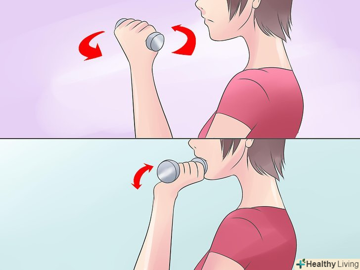 Зміцніть свої зап'ястя.вправи на зап'ястя за рахунок використання гантелі вважаються несучими вагове навантаження вправами. Такий вид фізичної активності призводить до утворення нової кісткової тканини, і він робить кістки сильніше.[2] разом зі збільшенням кровотоку при фізичному навантаженні також збільшується м'язова маса і сила. Може бути виконано наступне:- Візьміть в обидві руки по гантелі при ліктях, зігнутих на 90 градусів. Поверніть долоні вгору і вниз десять разів. Виконуйте цю вправу, по крайней мере, один раз в день.