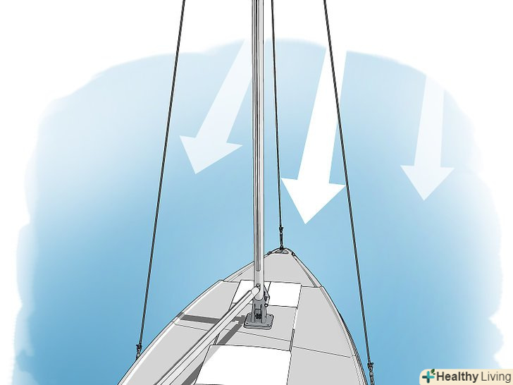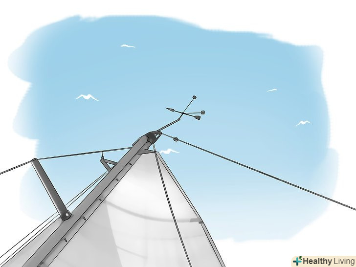 Визначте напрямок вітру.якщо на вашому судні немає чогось на зразок детектора напрямку вітру ("флюгера") на щоглі, прив'яжіть до вантів кілька 20см шматків Старої касетної плівки (з відео - або аудіокасет) або промасленої пряжі. Це покаже вам, в якому напрямку дме вітер. Деякі моряки знаходять плівку занадто чутливою для цих цілей. Якщо і ви так вважаєте, то спробуйте плівку з відеокасет або промаслену пряжу.- Помістіть їх на висоті близько 120 см від борту, з кожного боку.