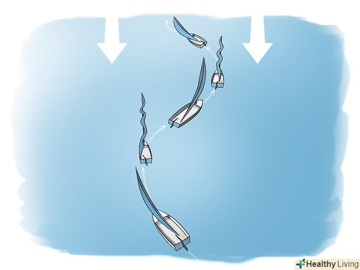 - Так як швидкість дуже легко втрачається при лавіруванні, вам доведеться виконувати цей маневр настільки м'яко і швидко, наскільки можливо. Продовжуйте лавіровку назад і вперед, поки не досягнете пункту призначення.