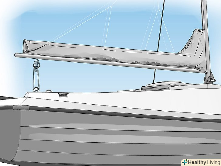 Зніміть і приберіть вітрила.як тільки опинитеся в безпеці порту, приберіть вітрила, знявши натяг з усіх лееров, що підтримують вітрило. Коли вітрила не використовуються, їх варто зберігати в чистоті і індивідуальному мішку. Вам потрібно буде виконати це і з фоком, і з клівером. Приберіть всі Вітрильні рейки з їх кишень. Як тільки складіть фок, помістіть його в чохол і прив'яжіть до гіку декількома вузлами. Не складайте вітрила одним і тим же способом, це викличе складки, які не розгладяться вітром. Вітрила слід зберігати сухими і відмитими від солі, так як на сирих вітрилах утворюється цвіль.[3]
