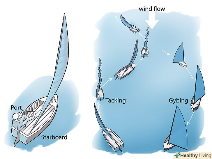 Знайте різні частини судна.важливо знати частини корабля з міркувань безпеки і найбільш ефективного управління нею. Якщо ви не знаєте, що робити, коли хтось раптово кричить "готуйся до маневру" або " бережися гіка!", то ви можете потрапити в неприємність.[1]- Блок: морський термін, еквівалент шківа.