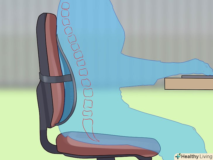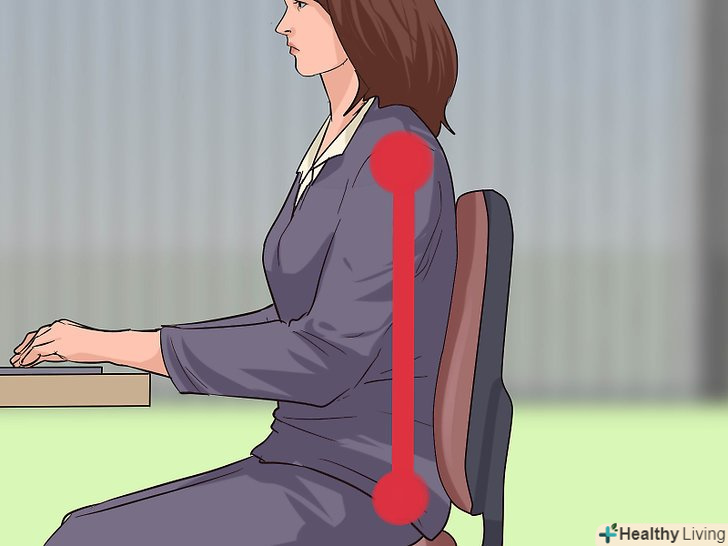 Сидіть в кріслі з активною спинкою, якщо це можливо.Все більше і більше досліджень показують, що сидіння протягом тривалих періодів часу в офісній обстановці призводить до серйозних проблем зі здоров'ям, в тому числі до напруги м'язів спини і плечей, а також підвищує ризик серцево-судинних захворювань.[4] з цієї причини, методи активного сидіння зараз популярні як ніколи і можуть стати хорошим варіантом і для вас.- Пристрої для активного сидіння включають стоячий стіл, стіл з біговою доріжкою, колінний стілець і багато інших ергономічні альтернативи, які змушують тіло триматися у вертикальному положенні, а не надають можливість для відпочинку.