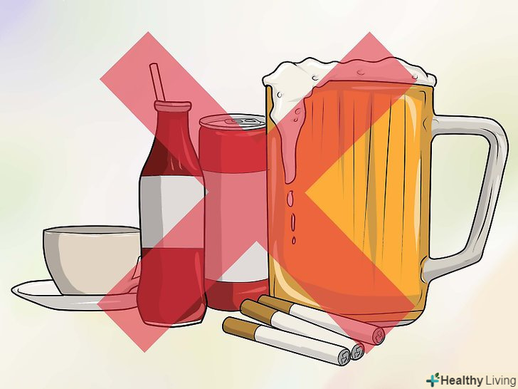 Уникайте вживання алкоголю та інших стимуляторів.щоб сприяти здоровому функціонуванню щитовидної залози вам слід уникати алкоголю, кофеїну та тютюнових виробів. Ці продукти викликають підвищення рівня гормонів стресу, які можуть вплинути на щитовидну залозу і привести до дисбалансу гормонів.[4]- Якщо ви не бажаєте назавжди відмовлятися від алкоголю і кофеїну, то вам варто виключити їх зі свого раціону на кілька тижнів, а потім вживати лише в помірних кількостях. Існують дослідження, які дозволяють припустити, що чорна кава може бути навіть корисною для неврологічного здоров'я.
