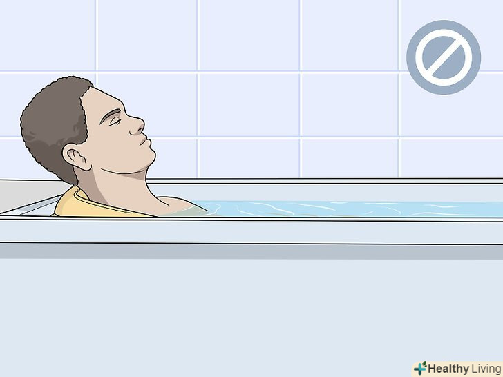 Утримайтеся від прийому ванн.більшість хірургів рекомендує приймати душ тільки тоді, коли вийде час суворої підтримки рани в сухому стані і ви самі будете готові до даної процедури.[19]- Не мочіть рану, не занурюйтеся в наповнену водою ванну, не приймайте гарячих ванн і не плавайте мінімум три тижні або до того моменту, поки лікар не дозволить вам це робити.[20]