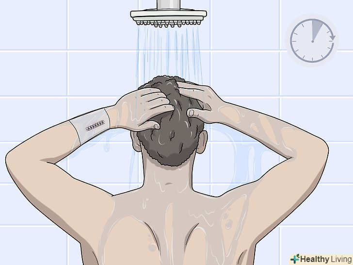Приймайте душ нетривалий час.хірурги переважно рекомендують приймати тільки п'ятихвилинний душ до тих пір, поки ви не зміцнієте і рана не почне гоїтися.[21]