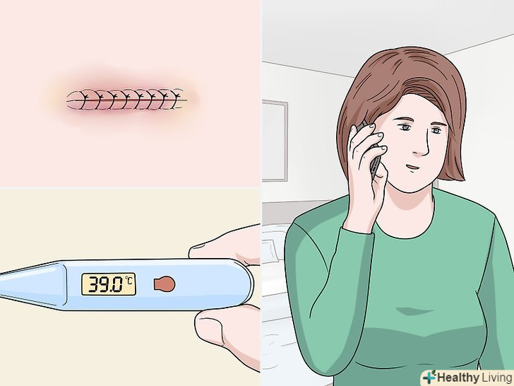 Викличте швидку допомогу, якщо у вас підніметься жар.трохи підвищена температура не є рідкістю після хірургічного втручання, але жар вище 38 °C може говорити про появу запалення.[34]- До інших ознак запалення, які також вимагають негайного звернення до медиків, відносять збільшення почервоніння і пухлини навколо шва, поява гною, виділень з неприємним запахом або дивно забарвлених виділень, підвищення чутливості рани і місцевої температури в цій області.[35]