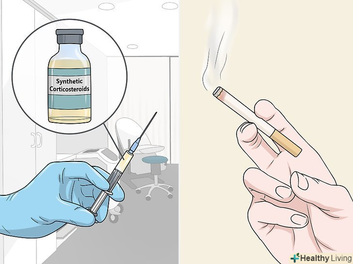 - Припиніть курити мінімум за два тижні до операції (якщо можливо), проте краще це зробити навіть за чотири-шість тижнів. Куріння уповільнює процес загоєння тканин[32] , позбавляючи їх кисню і потенційно сприяючи розвитку запалення.[33]