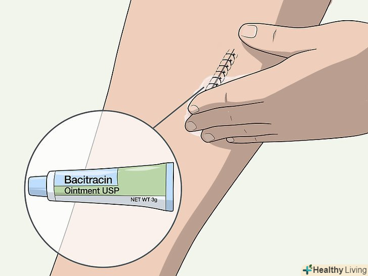 Обробляйте шов тільки тими кремами і мазями, які призначив лікар.уникайте застосування зовнішніх засобів для обробки шва, якщо їх не призначив хірург.[11]- Зміна пов'язки відповідно до вказівок вашого лікаря може вимагати застосування зовнішніх засобів. Можливо, Вам рекомендували креми та мазі з антибіотиком як частина процедури зміни пов'язок, однак, користуйтеся ними тільки в тому випадку, якщо вам їх дійсно призначили.[12]