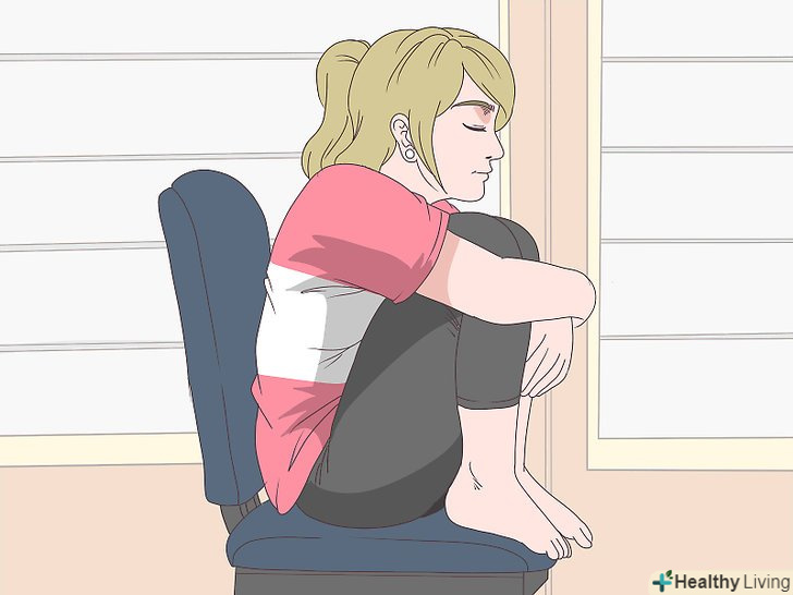 Спробуйте сісти на стілець і обхопити коліна.Сядьте на стілець з прямою спинкою і повністю зіпріться об неї спиною. Повільно підніміть ноги, обхопіть їх руками і поставте на стілець перед собою. Залишайтеся в такому положенні до двох хвилин, потім опустіть ноги.[14]- Якщо гикавка не проходить, повторіть вправу 2-3 рази.