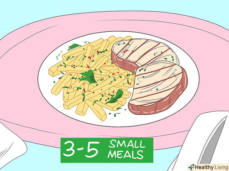 Їжте меншими порціями.великі порції можуть спровокувати гикавку, особливо у дітей. Контролюйте розміри порцій, щоб запобігти гикавці. Крім того, не їжте занадто часто, щоб не переїдати.[18]- Наприклад, можна з'їдати 3-5 невеликих порцій кожні 2-3 години.