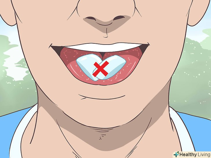 Не жуйте жувальну гумку, щоб не ковтати повітря.при жуванні гумки ви кожен раз ковтаєте трохи повітря. На жаль, у деяких людей це може викликати гикавку. Якщо у вас часто буває гикавка, краще відмовитися від жувальної гумки.[20]- Використовуйте замість жувальної гумки м'ятні льодяники або тверді цукерки.