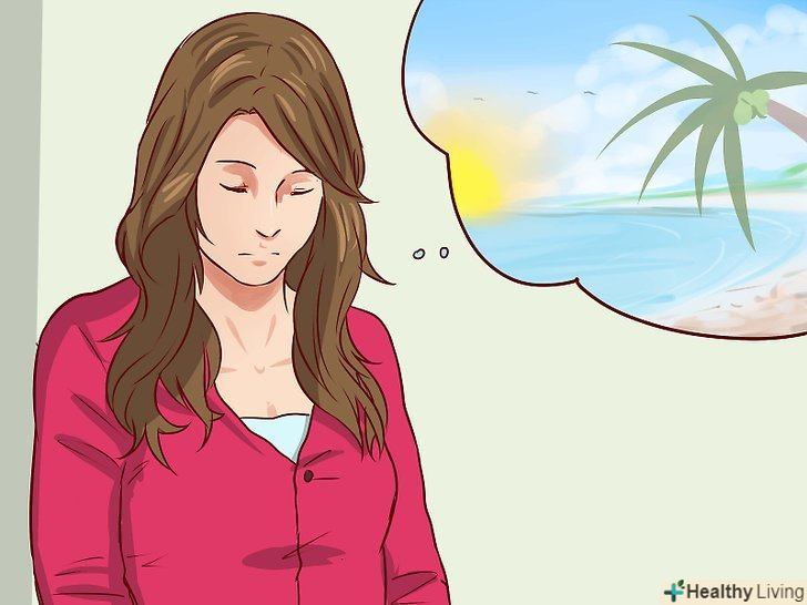 Відвідайте "щасливе місце" або візуалізуйте успіх. ви можете уявити "щасливе місце", щоб віддалитися від місця, де ви нервуєте, і побувати там, де немає стресу, будь то Торговий центр або пустельний пляж.- Уявіть, що ви досягли успіху в тому, що змушує вас нервувати. Позитивні візуалізації можуть перетворитися на реальні успіхи, якщо ви дійсно вірите, що можете досягти успіху.