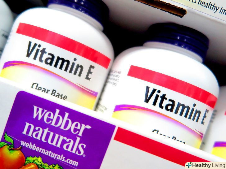 Приймайте вітамін Е. Вітамін Е, як і вітаміни А і С, є антиоксидантом, але він також корисний для шкіри і зору.[26] Вітамін Е є в оливковій олії, горіхах, а також в деяких фруктах і овочах.