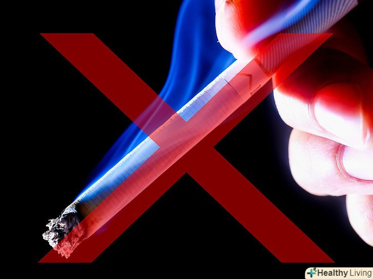 Відмовтеся від куріння. Тютюн шкодить всім органам, руйнує імунітет і підвищує ймовірність інфаркту[39] , серцевого нападу і раку легенів. Нікотин з'єднується з гемоглобіном в крові, перешкоджаючи проникненню кисню, в результаті чого клітини тіла не насичуються киснем. [40] крім того, куріння провокує виділення канцерогенних речовин і смоли, що послаблює імунітет і робить організм вразливим до інфекцій.[41]