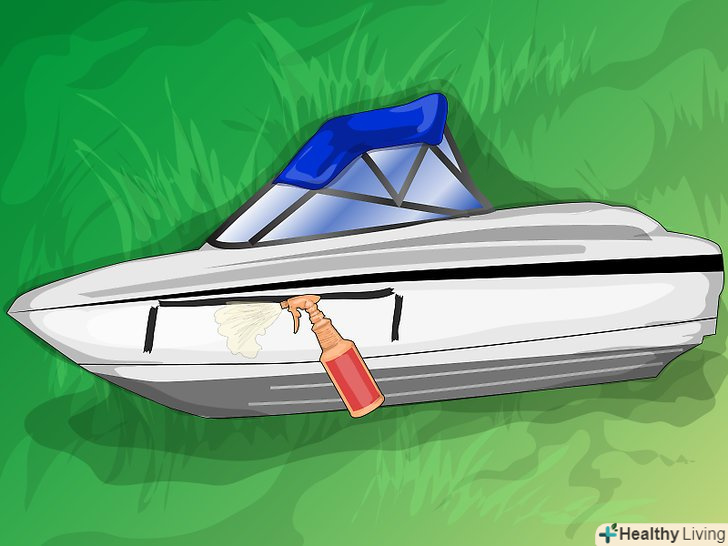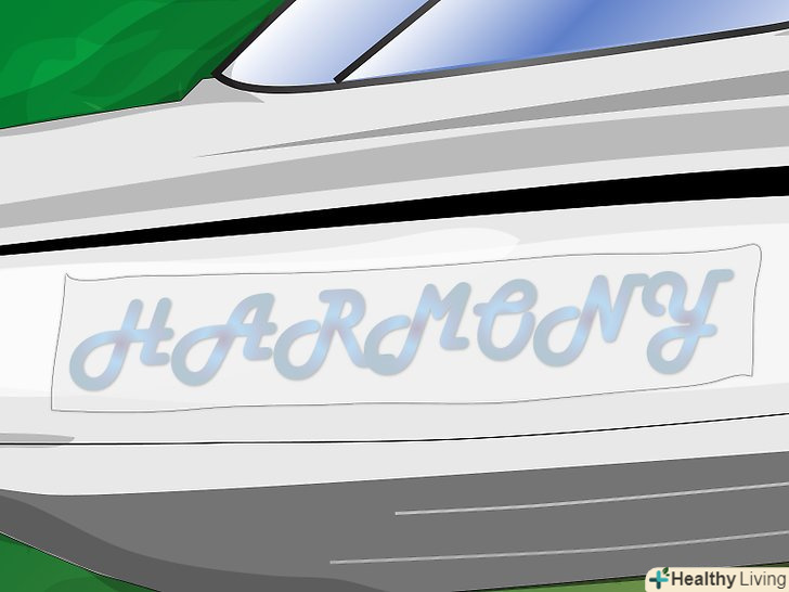 Зробіть розчин з 1 чашки води і 6-8 крапель засобу для миття посуду Палмолів.помістіть цей розчин в пляшку з обприскувачем. Візьміть розчин разом з написом найменування катера з вологим відставанням або перекладним реєстраційним номером, а також прогумований кухонний шпатель або щось інше з прогумованим рівним краєм.