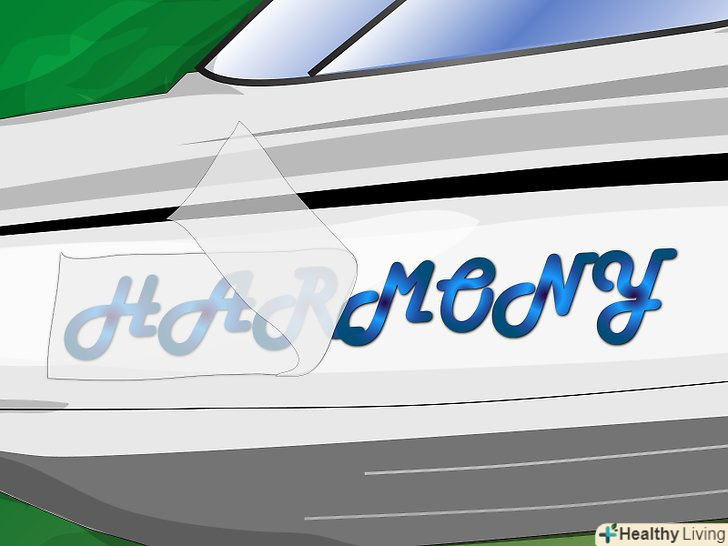 - Розгляньте можливість отримання графіки шляхом вирізання або роздрукування на стійкому вінілі, такому як, 3M Контролтек, Оракал Репідее або Евірі Ізі Еплай. Клей в цих трьох марках вінілу активується в повному обсязі, до тих пір, поки ви сильно їх не розрівняєте. Ці три види вінілу дозволяють повітрю методично виходити і практично видаляти бульбашки, які, зазвичай можна видалити тільки за допомогою інструменту для видалення.