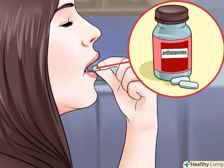 Приймайте антигістамінні препарати.антигістамінні засоби допомагають зняти свербіж за рахунок того, що вони блокують вироблення гістаміну — речовини, яка викликає алергічну реакцію, що призводить до шкірного свербіння. Антигістамінні препарати для перорального та місцевого застосування можна придбати без рецепта в найближчій аптеці.[14]- Антигістамінні засоби можна приймати перорально (у вигляді таблеток і розчину) або наносити на шкіру (у вигляді мазей і лосьйонів). Якщо свербить велику ділянку шкіри, рекомендується використовувати препарати в пероральній формі, які діють на весь організм. Якщо ж свербіж зосереджений в невеликій області, можна використовувати мазь для місцевого застосування.