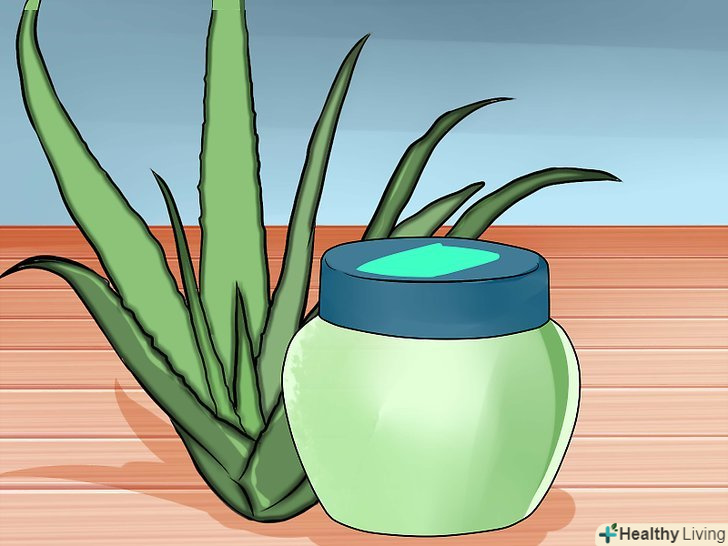 - Якщо ви хочете використовувати чисте джерело соку, можна придбати кімнатна рослина алое вера. В цьому випадку відірвіть листок і розріжте його навпіл на дві плоскі частини. Видавіть з половинок листа сік і змастіть їм пошкоджену ділянку шкіри.[21]