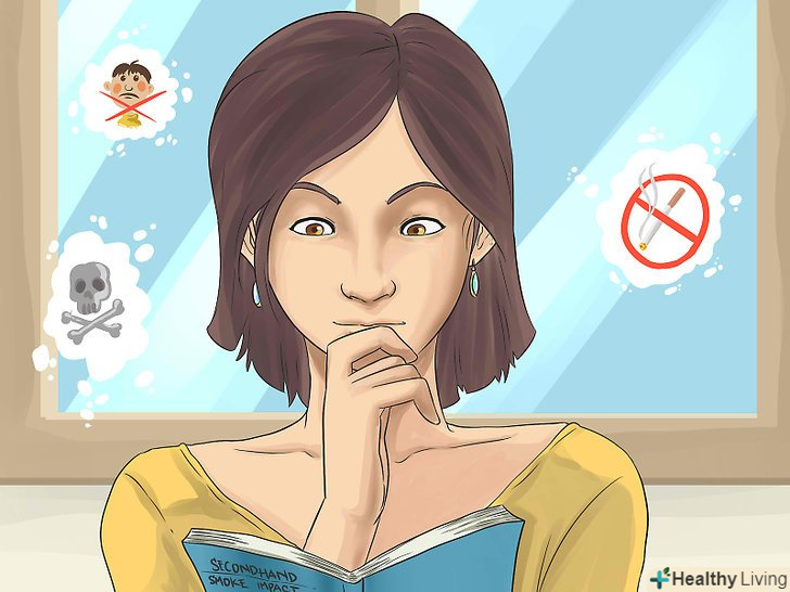 - Подумайте про плюси цього рішення. Ви не тільки захистите своїх дітей від диму, але й подбаєте про своє власне здоров'я. Подумайте про те, що через 20 хвилин після останньої викуреної сигарети частота ударів серця зменшиться, а кров'яний тиск знизиться. Через рік після відмови від куріння ризик розвитку ішемічної хвороби серця скоротиться вдвічі. Через 20 років ймовірність розвитку раку легенів буде на 50% менше, ніж у курця.[4]
