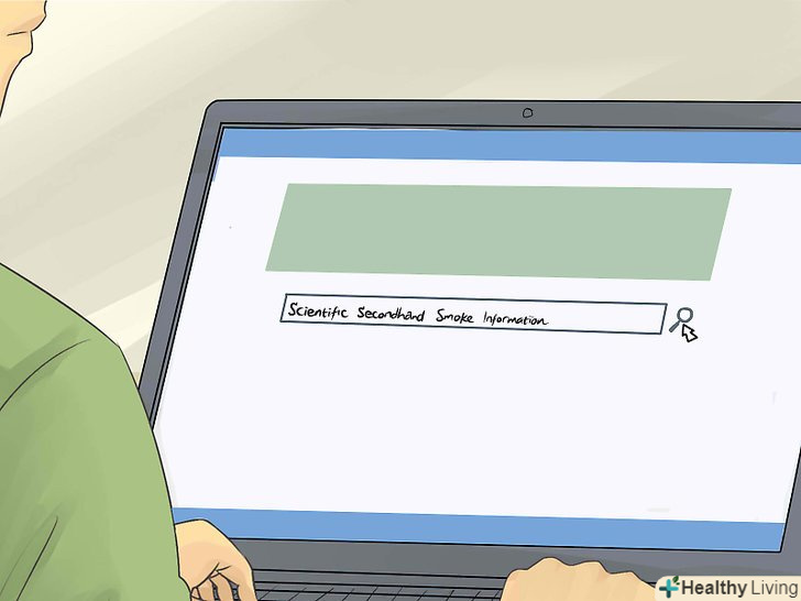 Вивчіть надійні наукові джерела інформації про пасивне куріння в Інтернеті.в Інтернеті зібрано досить велику кількість важливих даних-наприклад, про те, що немає такої кількості диму, яке можна було б вдихнути без ризику для здоров'я.[9] маленькі діти, які змушені вдихати дим, більше схильні до ризику смерті від синдрому раптової дитячої смерті.[10] в результаті пасивного куріння у дітей частіше розвиваються вушні інфекції, кашель, застуди, проблеми з зубами; діти довше одужують після хвороб.[11] в майбутньому у таких дітей підвищується ризик утворення раку легенів і захворювань серця, а також виникають проблеми з розвитком легенів.[12]