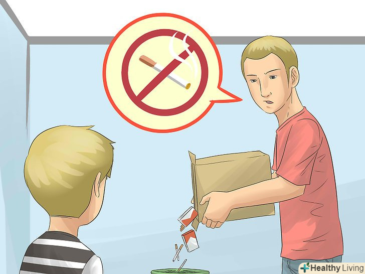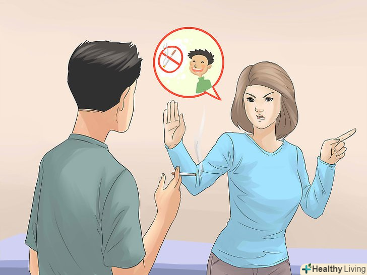 Забороніть куріння в будинку.це ваш будинок, і ви маєте на це право. Якщо будь-яка людина, яка прийшла до вас в гості, хоче покурити, дайте йому зрозуміти, що курити можна тільки на вулиці, далеко від дітей. Навіть якщо дітей немає поруч, залишки тютюнового диму можуть завдати їм шкоди.[6]