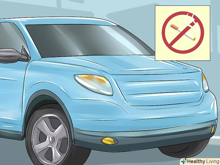 Забороніть куріння в своїй машині.деяким здається, що досить просто опустити скло, і дим нікому не завадить. Це не так. Опущені скла можуть навіть перенаправити дим в обличчя тих, хто сидить на задньому сидінні.[7]- Навіть якщо дітей немає в машині, коли хтось там курить, ризик від впливу залишків диму все одно залишається.