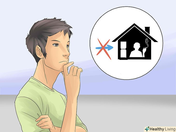 З'ясуйте, чи можна курити у вашому домі.якщо ви живете в квартирі, і інші мешканці курять, дим може доходити і до вас. З'ясуйте, чи дозволено у вашій країні куріння в приміщенні.- Якщо курити не можна, а дим заважає вам, спробуйте домовитися з сусідами.