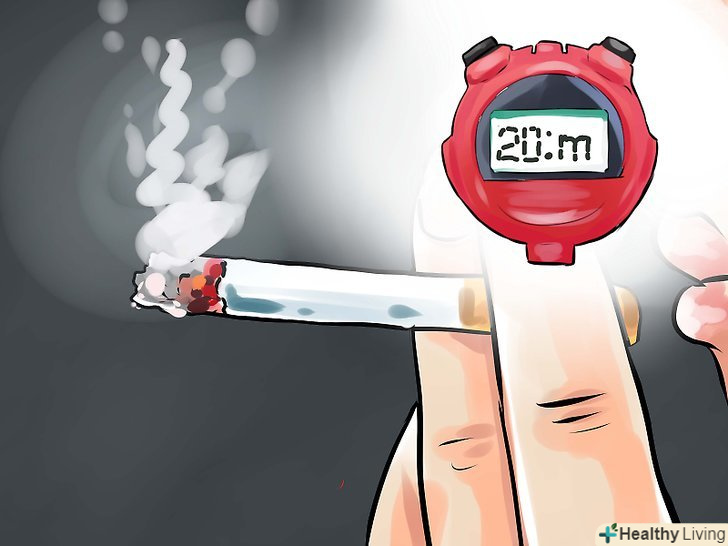 Засікайте час.якщо в певних обставинах, наприклад в барі або під час прогулянки з друзями, ви часто викурюєте одну сигарету за одною, спробуйте засікати час між сигаретами. У веселій компанії легко захопитися і втратити рахунок викурюваним сигаретам. Щоб цього не сталося, після кожної сигарети встановлюйте таймер на своєму телефоні і чекайте, поки пройде намічений час, перш ніж закурити наступну сигарету.- Після встановленого часу спробуйте збільшити інтервал між сигаретами. Наприклад, якщо ви встановили таймер на 20 хвилин, почекайте додаткові 2 хвилини. Якщо ваш друг також прагне обмежити куріння, можна влаштувати невелике змагання, хто з вас протримається довше.[13]