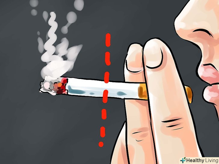 Не докурюйте сигарети до кінця.ще один спосіб обмежити куріння полягає в тому, щоб викурювати лише чверть або половину сигарети. Після цього дочекайтеся наступного перекуру і викуріть другу половину або чверть.[12]- Таким чином ви будете курити так само, як зазвичай, але лише по половині сигарети за раз. Частота перекурів не зменшиться, але при цьому ви скоротите куріння в два рази.