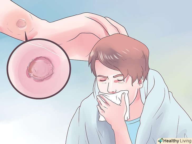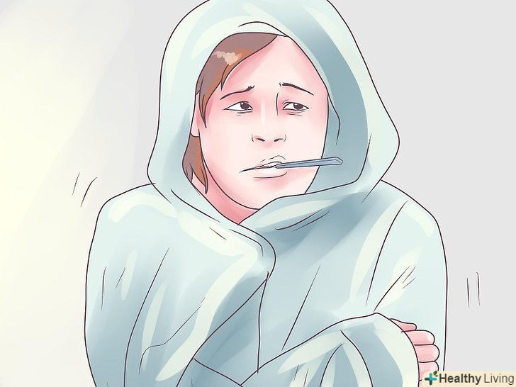 Поміряйте температуру.у нормі температура повинна бути в межах 36,5-37,5°C. Якщо температура вище, значить у вас лихоманка і ви, швидше за все, підхопили інфекцію. Висока температура частіше буває при грипі, ніж при застуді, проте в будь-якому випадку це означає, що ви заразні.- Підвищена температура говорить про те, що організм почав боротися з інфекцією. Температура тіла може незначно відрізнятися в залежності від обраного Вами способу вимірювання температури: перорально, ректально, в вусі або в пахві. Висока температура при грипі найчастіше тримається 3-4 дні і може бути в межах 37,7-38,8° C, а у дітей і вище.[1]