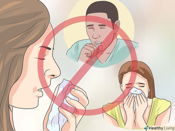 Намагайтеся не контактувати з хворими людьми.вірус грипу поширюється від заразної людини на цілих 2 метри. Коли людина кашляє або чхає, утворюються найдрібніші краплі, які, переміщаючись по повітрю, потрапляють на руки, рот або вдихаються відразу в легені. [16]