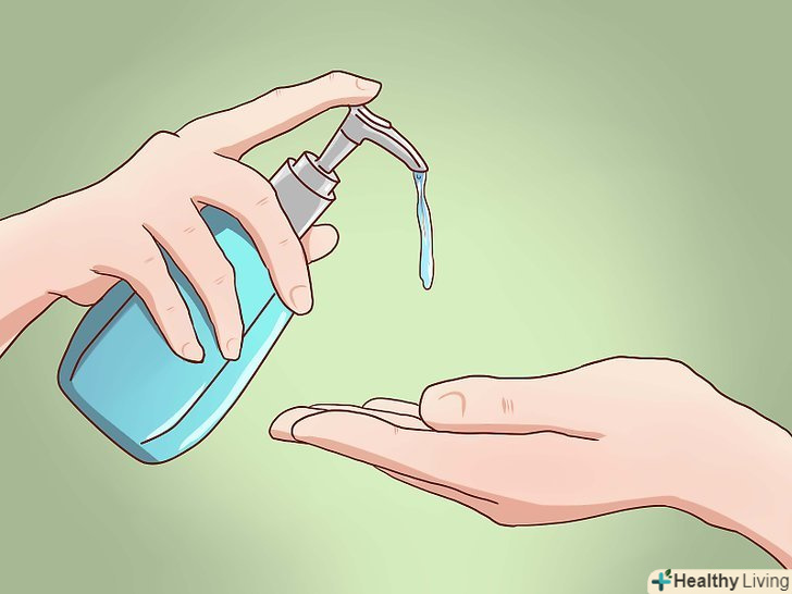 Користуєтеся антисептиком для рук.нанесіть порцію препарату на шкіру сухих рук. Втирайте його в шкіру, покриваючи всі ділянки, до повного висихання препарату. Це займе близько 15-20 секунд.[15]
