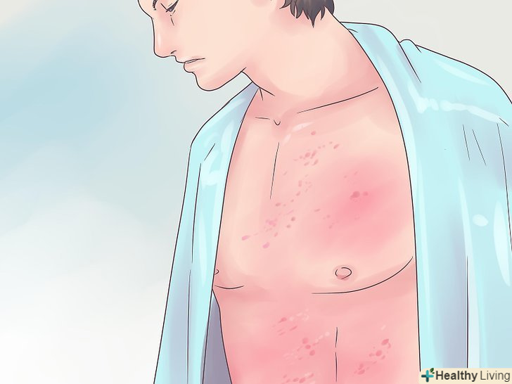 Зверніть увагу на шкірний висип.шкірні висипання часто є симптомом заразного захворювання. Висип, що з'явилася на великих ділянках тіла, може бути алергічного або вірусного характеру. Вірусний висип-це симптом дуже заразних захворювань, таких як вітрянка або кір.- Вірусні висипання поширюються по тілу двома способами. Або спочатку з'являються симетричні висипання на кінцівках, з обох сторін, а потім поширюються до центру тіла. Або спочатку з'являються висипання на грудях або спині, а потім поширюються на руки і ноги.