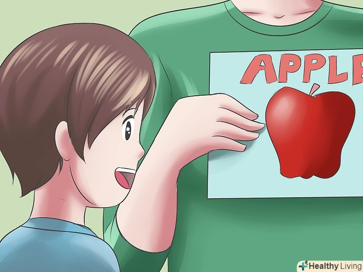 Попрацюйте з дитиною над словесними асоціаціями.для аутичних дітей може бути складніше читати і запам'ятовувати слова, ніж пам'ятати те, що вони чули. Картинки можуть допомогти аутичним дітям запам'ятати написане слово і також запам'ятати слово, яке вони чули.- Наприклад, ви могли б написати слово "Сонце" на дидактичній картці і в той же час показувати зображення яскравого жовтого Сонця. Це дасть їм провести зв'язок між зображенням і карткою. Дидактичні картки-це теж форма картинок, які краще, ніж просто написати слово на аркуші паперу.