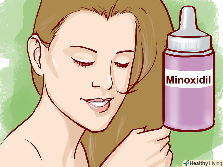 Втирайте в шкіру голови міноксидил.це рідина або піна, яка продається без рецепта. Втирати засіб потрібно два рази в день. Цей препарат стимулює ріст волосся, або зупиняє випадання, або робить і те, і інше.[49]- Цей препарат підходить як чоловікам, так і жінкам і продається без рецепта.[50]