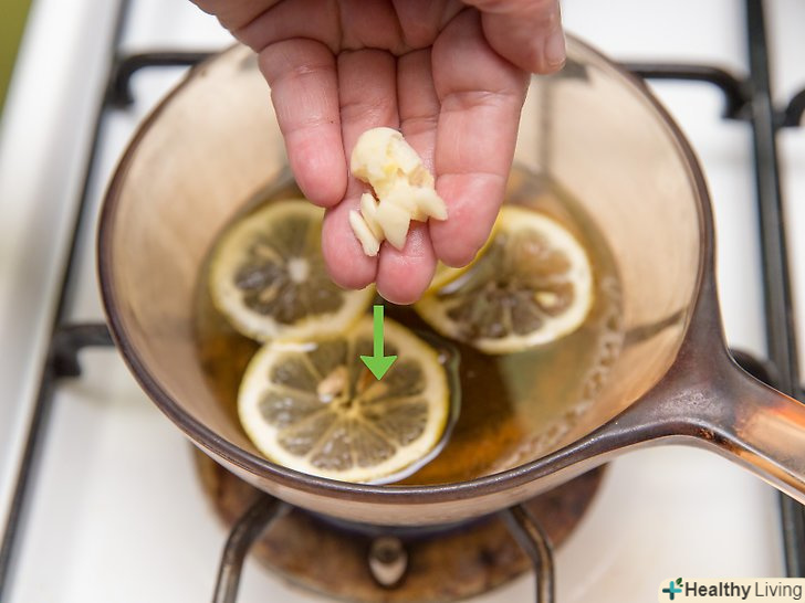 Приготуйте ліки від кашлю на основі часнику і суміші меду з лимоном.часник має антибактеріальні, противірусні, антипаразитарні та протигрибкові властивості. [5] почистіть 2-3 зубчики часнику і дрібно їх подрібніть. Додайте часник в медово-лимонну суміш перед тим, як додавати в неї воду. Нагрівайте суміш на повільному вогні протягом 10 хвилин. Потім додайте ¼ - ⅓ склянки води в медово-лимонну суміш. Продовжуйте нагрівати суміш на повільному вогні, постійно помішуючи.- Охолодіть суміш. Приймайте по 1-2 столові ложки цього засобу в разі необхідності.
